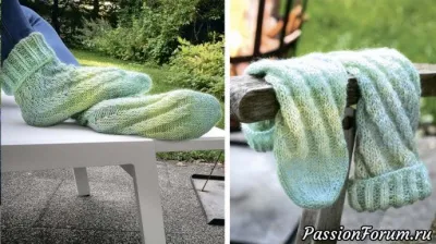 Когда будет достигнута необходимая длина паголенка, свяжите узор для планки, то есть 15 круговых рядов попеременно: 2 изнаночные и 2 лицевые петли. Узор не смещайте, закончите работу соед. ст. и заправьте нить.