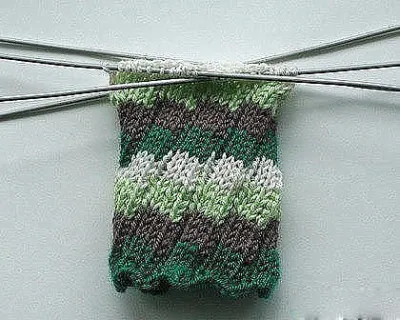 Вяжется по кругу, поэтому применяется для изделий, связанных в форме трубы - носков, варежек, шапок.