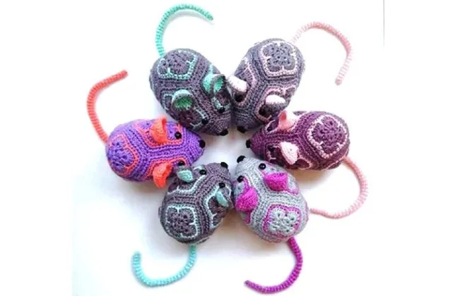 Вязаная из африканских мотивов мышка. Схема вязания и сборки