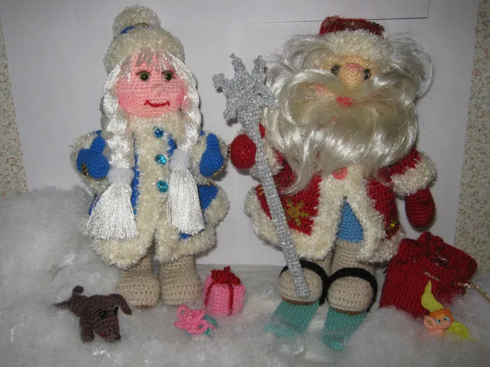 Отличная работа! Снегурочка к тому же такая розовощёкая, ну очень мне нравится! Для себя вязали или под заказ?