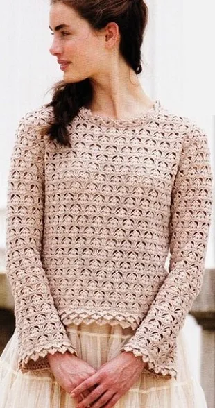 Ажурный пуловер связан крючком. по схемам.