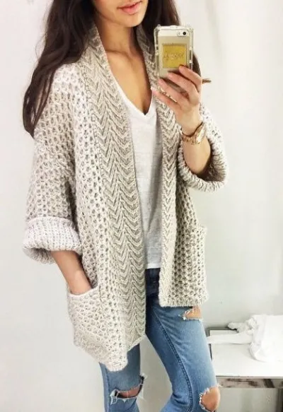 Люблю теплые жакеты, кардиганы. Здесь хорошо смотрится крупная вязка. Узоры прекрасно сочетаются. Спасибо за модель!