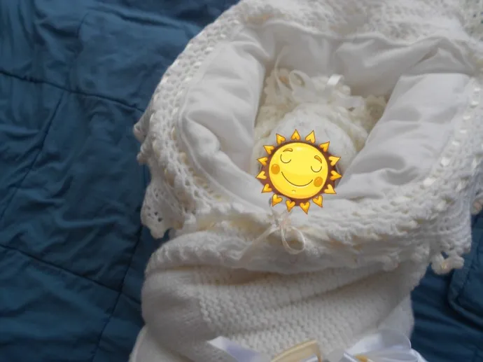Комплект вязала месяц. В него вошло - комбинезон, сапожки, шапочка, одеяло, уголок и бант. Использовала пряжу Ализе "Детская новинка". Ушло 1200 гр. Шапочку одеялко и уголок расшила пайетками. На бант ушло 5 метров ленты.