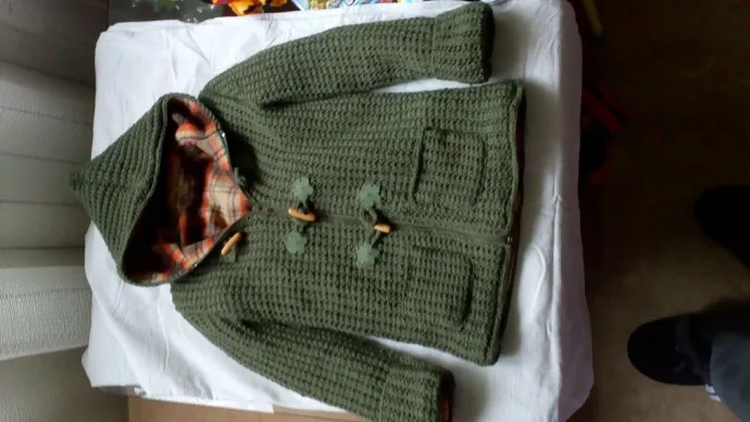 Любит бабушка внука, теплую курточку связала на подкладе! Тепло будет малышу!