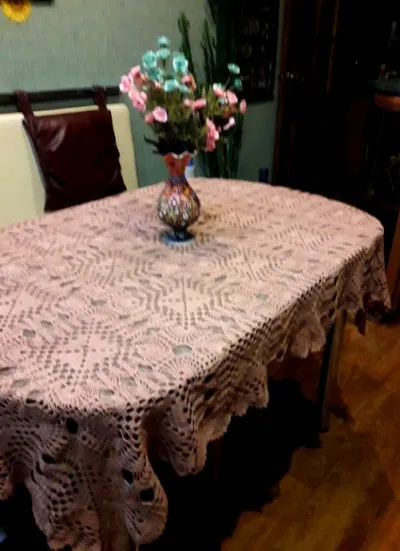 Скатерть, связанная крючком на обеденный стол для кухни. Крючок № 1,5, нитки "коко" (хлопок мерсеризованный)