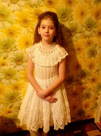Очень красивое платье. А можно схему, а то к Рождеству уже не успеваю ребенку связать. Спасибо