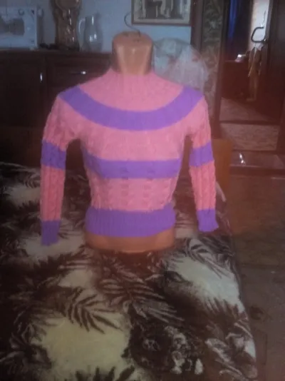 вязала на заказ... Вообще на девочку 6 лет... Сказали девочка крупненькая, ещё не мерила, то кажется мало то велико... Нитки пехорка детская новинка, цвет азалия и тёмная фиалка,спицы номер 3... Вязала сверху вниз