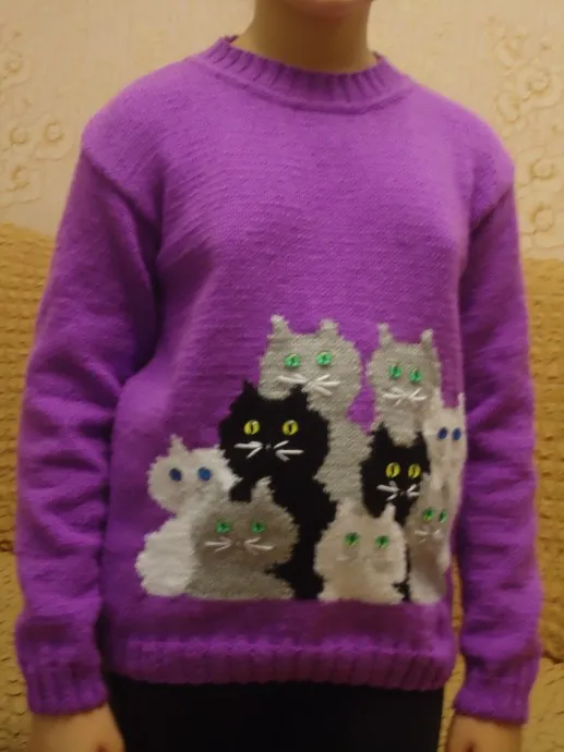 Свитер с котятами (интарсия)
