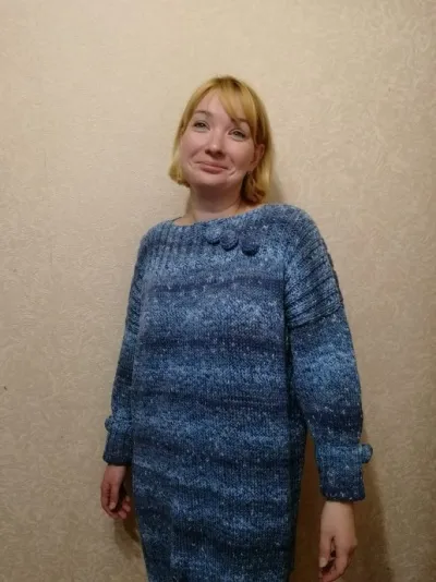 Кто помнит "Уютную тунику", тот сразу же все поймет о чем речь. Долго уговаривала подруга связать ей именно такую тунику без каких либо изменений, в коне концов я сдалась,но с одним условием - цвет выбирай другой. И вот "Уютная туника N 2"  готова...Невестке соответственно так же большая...