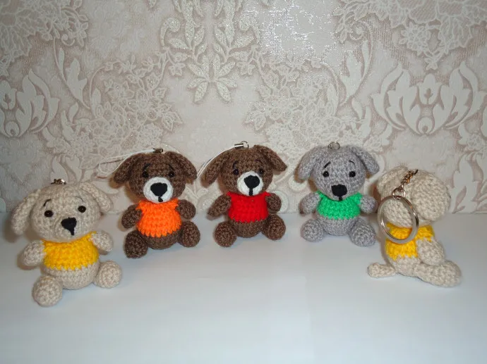 Эти милые песики связаны крючком из акриловой пряжи "Детская новинка".