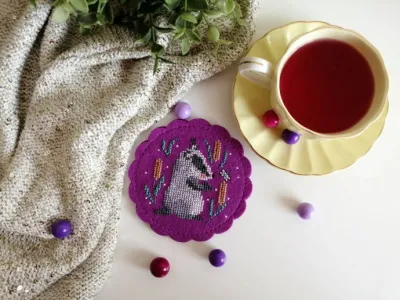 Всем привет! Предствляю Вашему вниманию свою новую вышитую работу - подставку для чашки. В основе ее фетр с перфорацией.