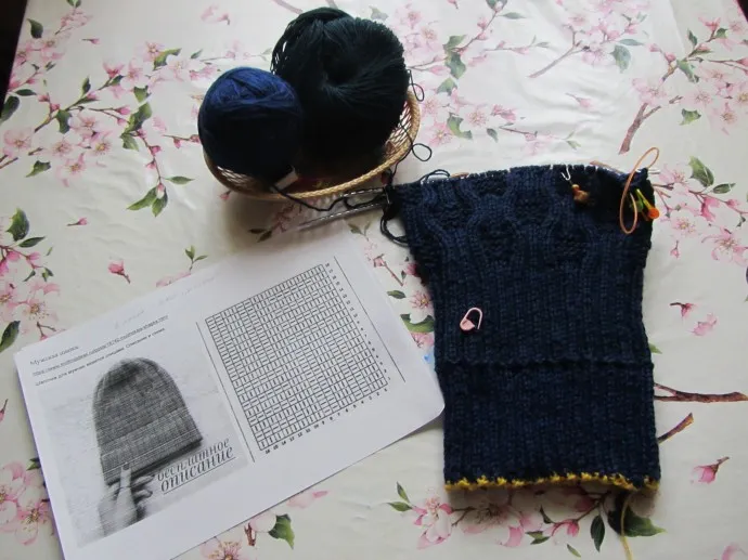 Спицы круговые № 4 и для подклада №3, завершала вязание на чулочных спицах № 4 и № 3