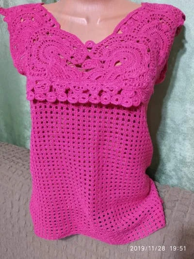Блуза связана из 100% мерсеризированного хлопка, в моточке 240м на 50гр., цвет ярко-розовый
