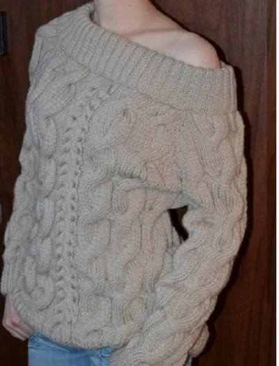 Стильный женский свитер связан спицами крупным объемным рисунком "косы" из полушерстянной пряжи Alize Lanagold Classic. Сбалансированный состав (48% шерсть, 52% акрил) этой пряжи позволяет получать мягкие, приятные к телу вещи, хранящие тепло натуральной шерсти и обладающие практичностью акриловой нити. Эффектно оформленная горловина, в стиле "декольте" (двойной резинкой), подчеркнет Вашу женственность и красоту, придаст шарм и сексуальность. Свитер хорошо сочетается с любой одеждой, подходит, и для праздников, и для ежедневной носки. В любом месте вы будете уместно одетой в таком свитере, а оголять ли плечи - решать вам!