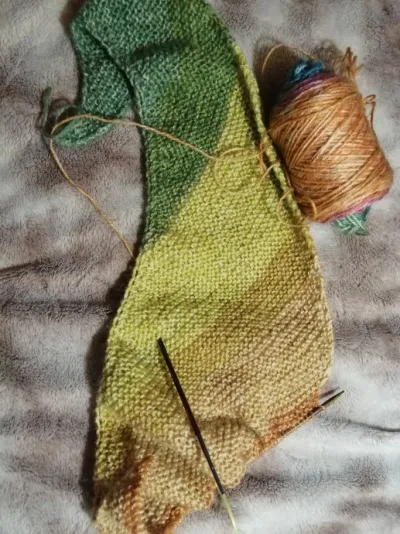 Бактус спицами или скандинавский платок из секционной пряжи NAKO!
