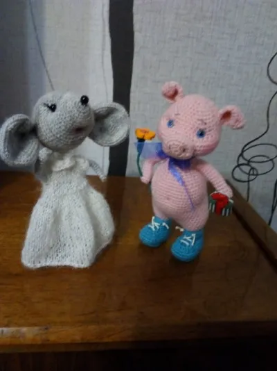 ООчень давно меня не было, наконец - то добралась до компа и столько всего нового и красивого увидела! Вдохновленная вашими мышками , тоже решила навязать. На подарки, продажу и просто для себя. И вот, что у меня получилось
