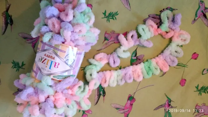 Нитки Alize Puffy Color — это плюшевая ниточка с уже готовыми петельками, 100% микрополиэстер, 100 гр/9 м