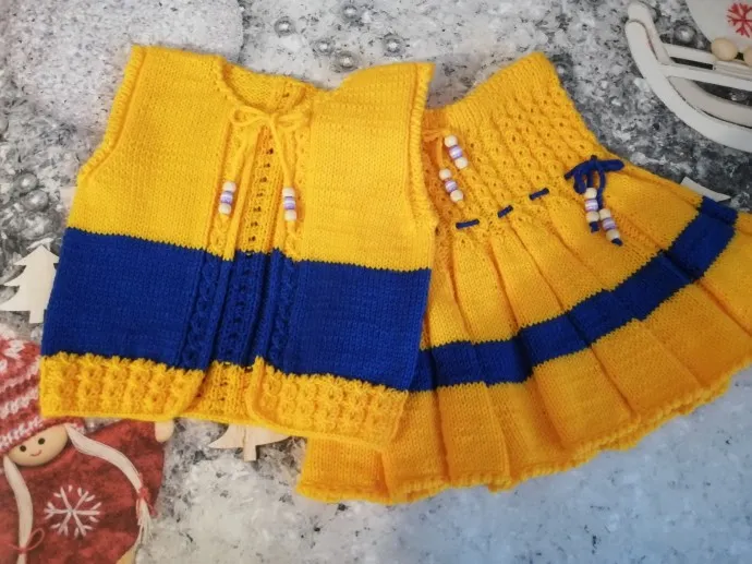Юбочка и жилетка для девочки спицами.