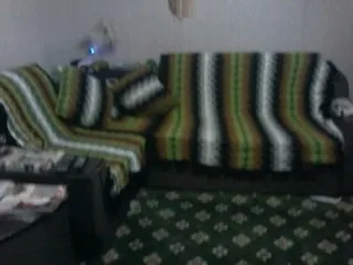 Комплект из 3-х частей, соединенных между собой + две подушки. Вязала из акрила. Узор простой: 5 рядов столбики без накида одним цветом, потом берем нитку другого цвета и вяжем один столбик под столбик первого ряда, второй под столбик второго ряда,третий под столбик третьего ряда,четвертый под столбик четвертого и пятый соответственно под столбик пятого ряда. Для подушек набрала цепочку необходимой длины и вязала по кругу, обвязав цепочку с двух сторон.