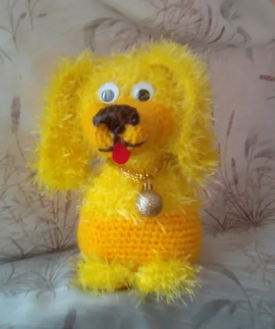 Собаку я связала крючком из остатков пряжи, наполнила наполнителем, небольшая отделка. Получился отличный подарок на день рождения внучке. Ей очень понравился. Собачку связала за два вечера.Она уже поучаствовала на новогоднем конкурсе в садике и получила грамоту. .