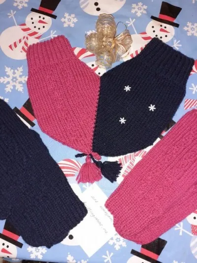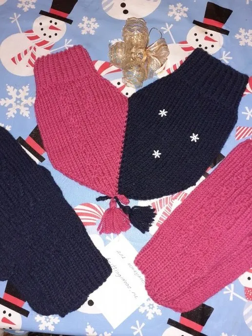 Ещё одни варежки для влюблённых. Пряжа Тоицкая, в одну нить. Если кто-то будет вязать или вяжите плотно или берите другую, после стирки вид не тот, очень мягкие. Но плюс, что почти не колется (кому это важно). К сожалению выбора пряжи особо не было (хотели именно розовую и синюю. Пряжа темно- синяя, на фото темнее).