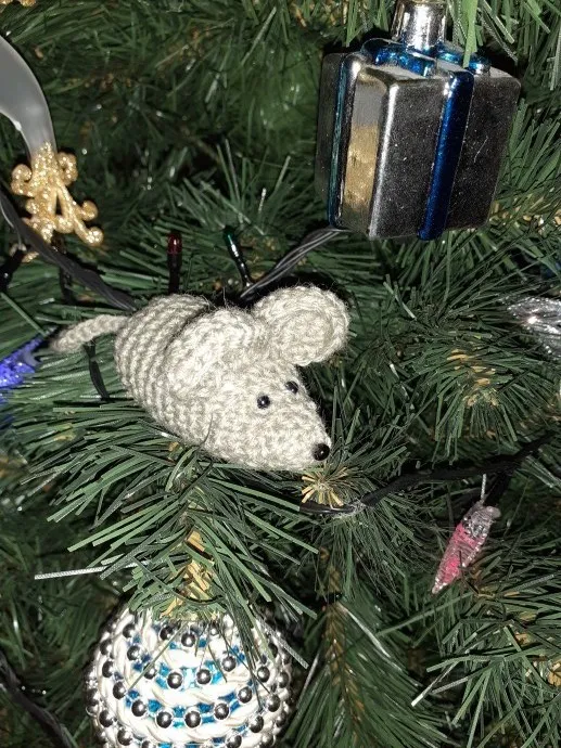 насмотрелась на ваших мышек, связала и себе на елку)))
