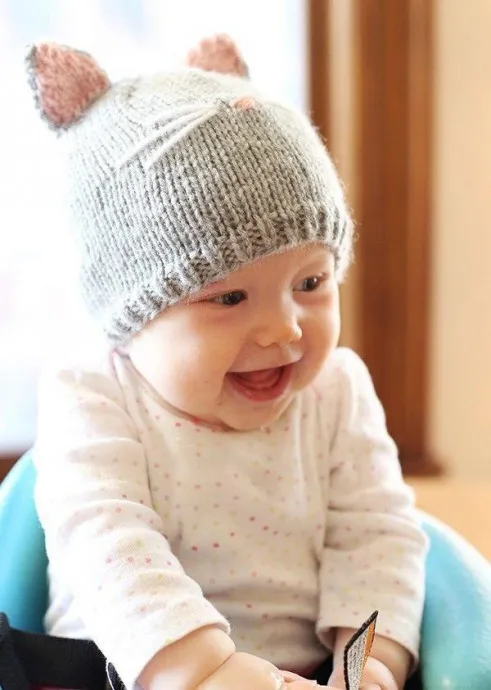 Симпатичная шапочка в виде мордочки котенка для малыша