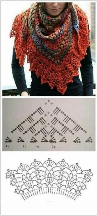 Бактус — по сути шарф. Вяжется от острого угла к центру, образует тупой угол и дальше в обратном порядке. Таким образом получается подобие шарфа с уголком и удобными завязками.