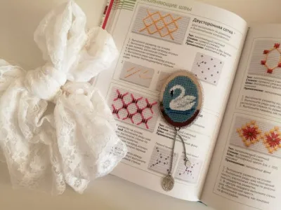 Я выбрала второй вариант! Купила сразу несколько заготовок, чтобы вышивать все то, чего мне давно хотелось. На первой закладке я вышила лебедя - прекрасную птицу, известную своей верностью.