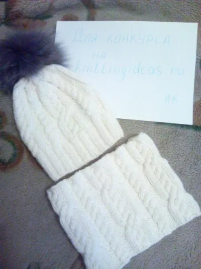 Здравствуйте, уважаемые рукодельницы. Хочу попытать счастья в конкурсе, и выставляю на ваш суд свою работу. Взрослый комплект связан из семеновской пряжи, ушло 1,5 мотка. Детская шапочка из ниток NAKO (1 моток в две нити).