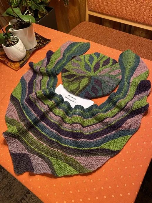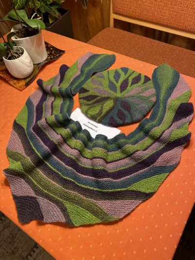 Не удержалась, чтобы не связать что-нибудь в технике свинг или , говоря русским языком, укороченными рядами. В интернете много работ невероятной красоты, выполненной в этой технике. Я выбрала, что попроще и доступней для начала, хотя всё равно пришлось повозиться, особенно с беретом. Изначально он планировался быть шапочкой, но в процессе создания переродился в берет.