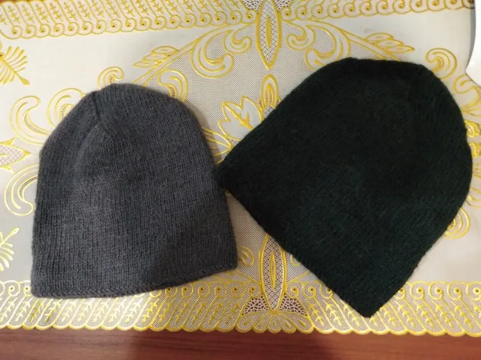 Больше года назад связала две шапочки для внуков. Через год мне вернули их на перевязку. А ниток таких у меня уже не было. Пришлось изделия полностью распустить, а пряжу выстирать. Как и прежде, шапочки вязала двойной вязкой, но изнутри связала другими нитками. Изделие получилось очень мягким и пушистым.