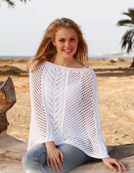 Потрясающей красоты нежное ажурное пончо, связанное спицами. Свяжите и вы себе эту красоту. Она согреет ваши плечики в прохладные вечера. Основную его часть составляет сетка, а посередине красуется коса. Ниже вы увидите подробное описание и четкие схемы этого пончо.
