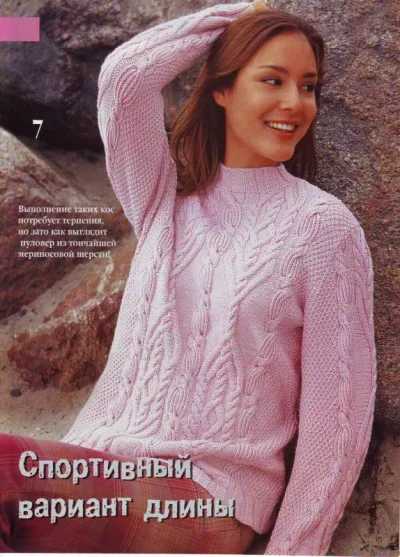 Узорчатый пуловер из розовой пряжи