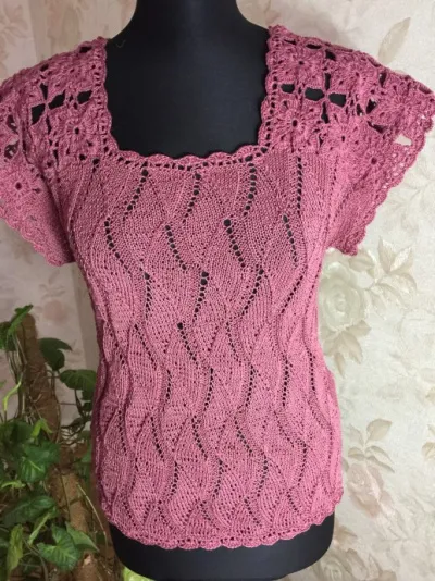 Очень красивая блуза, оригинальная, цвет приятный, аккуратно связана.