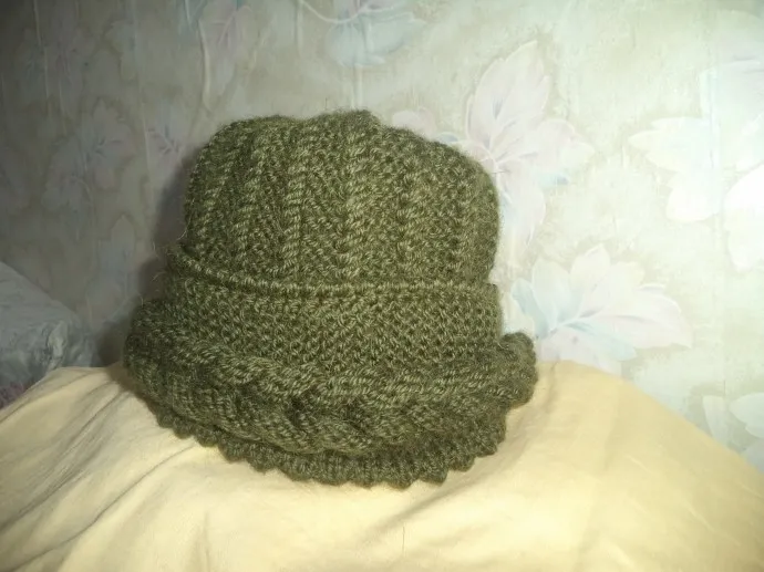 Все работы связаны спицами. Зелёная шапка - отворот вязала отдельно, полосками, которые потом вплела в косу. Платочная вязка чередовалась с косичками из трёх петель. Пряжа "Деревенская", спицы - №4. Чалма, ободок и манишка - из ализе, очень нравится эта пряжа, зимой не мёрзну. Ободки вязала спицами №4, резинка не знаю, как называется - в изнаночном вязала только лицевыми петлями, а в лицевом ряду - одна изнаночная, лицевая - из предыдущего ряда.