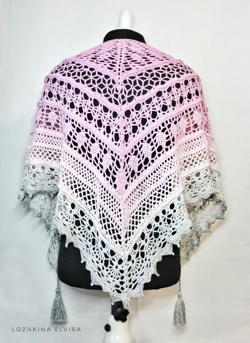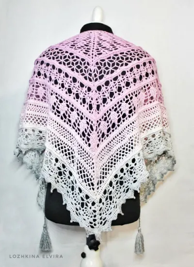 Ажурная шаль "Edlothia" от дизайнера MorbenDesign (Jasmin Räsänen), схемы из интернета, находятся в свободном доступе. Одна из крайних шалей, мною связанных. Решила поучаствовать с ней в конкурсе) Пряжа моя любимая YarnArt Flowers (55% хлопок, 45% акрил) цвет №293, крючок 2,75. Размер 160 см по длинной стороне (без учета кистей), 70 см по центральной части.
