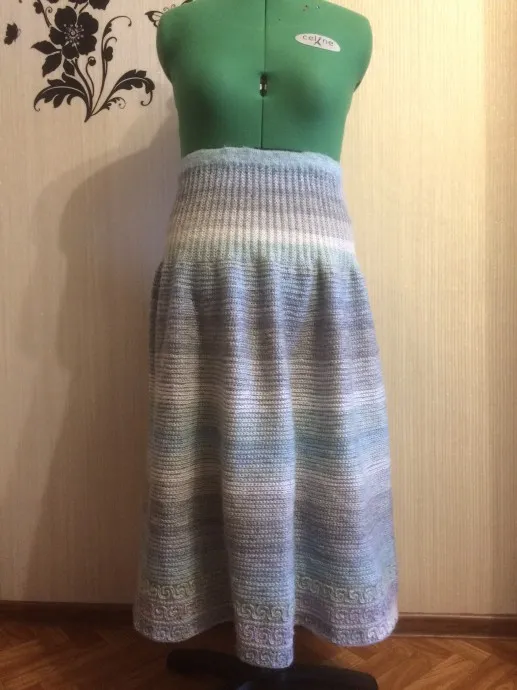 Спасибо за отзыв.Пряжа NAKO Peru Color. На юбку 52-54р. ушло 3 мотка пряжи NACO и 3 мотка ALIZE Angora Gold. Юбка получилась очень теплая, плотная. Ну и весомая. Все таки 600гр. пряжи.
