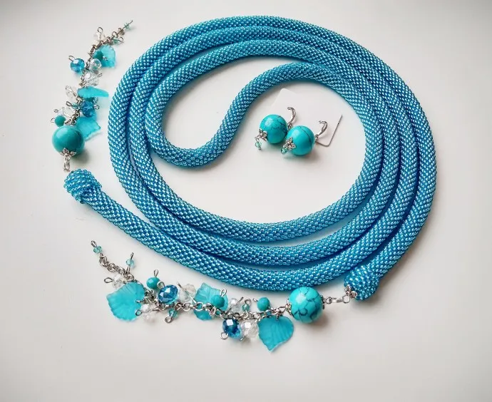 Доброго времени суток! Не могу не поделиться этой работой на нашем замечательном сайте,так как заказ на этот лариат получила именно здесь). Так появился лариат в прекрасном цвете голубой бирюзы!