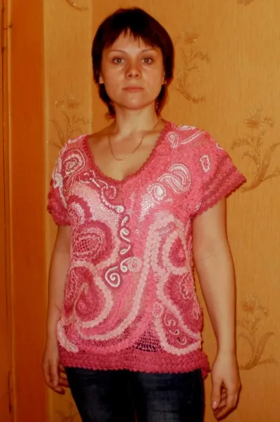 Эту кофточку первоначально хотела вязать себе. Но, когда она была уже готова , решила подарить ее своей двоюродной сестренке.Название для нее так и не придумала.