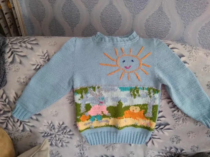 Это мой первый опыт в вязании сюжетной картинки. С жаккардом вроде бы на "ты". Но это... не передать словами.