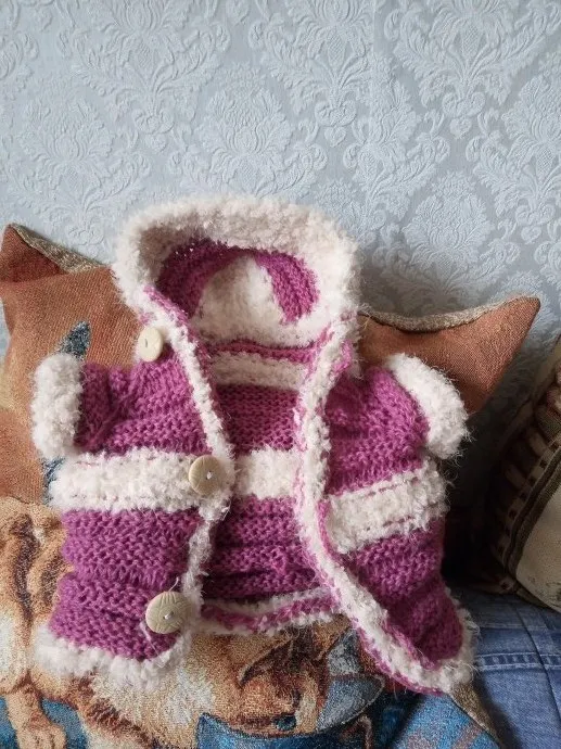 Из остатков пряжи,пушистая-Голубка,розовая-вегонь.Спицы3,5мм.