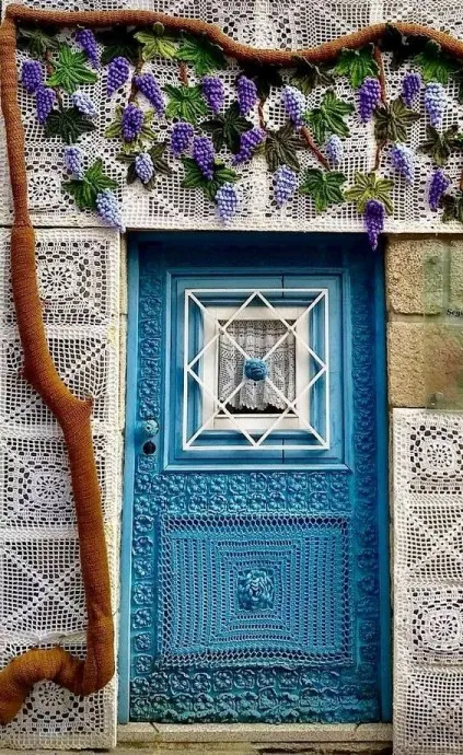 Этот дом находится в Португалии. В этой стране достаточно жаркий климат и довольно редко бывают дожди. Тем не менее, интересно, как владельцы ухаживают за таким вязаным декором?