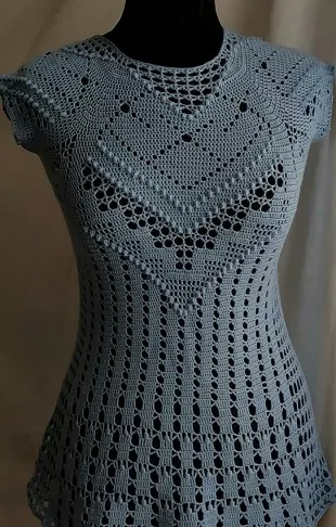 Но талант дизайнера этого топа состоит в том, что он НЕ СМОТРИТСЯ перегруженным! Все узоры грамотно подобраны, скомпанованы, дополняют друг друга, подчеркивают красоту друг друга! И работа технически безупречная! Если бы я взяла за идею этот топ (надеюсь, созрею!), я бы плотную часть узора опустила в район груди и сделала бы более глубокий вырез горловины спереди. Мне кажется, что тушкам типа моей — обремененной жизненным опытом , это будет уместно. А тем, кто как кипарис, и в таком варианте —