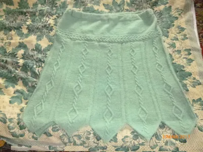 Она получилась на кокетке до линии бёдер, а дальше идут клинья, 8 штук. Каждый клин заканчивается треугольником, так что низ юбки получился в зубчиках, фигурным, так сказать)