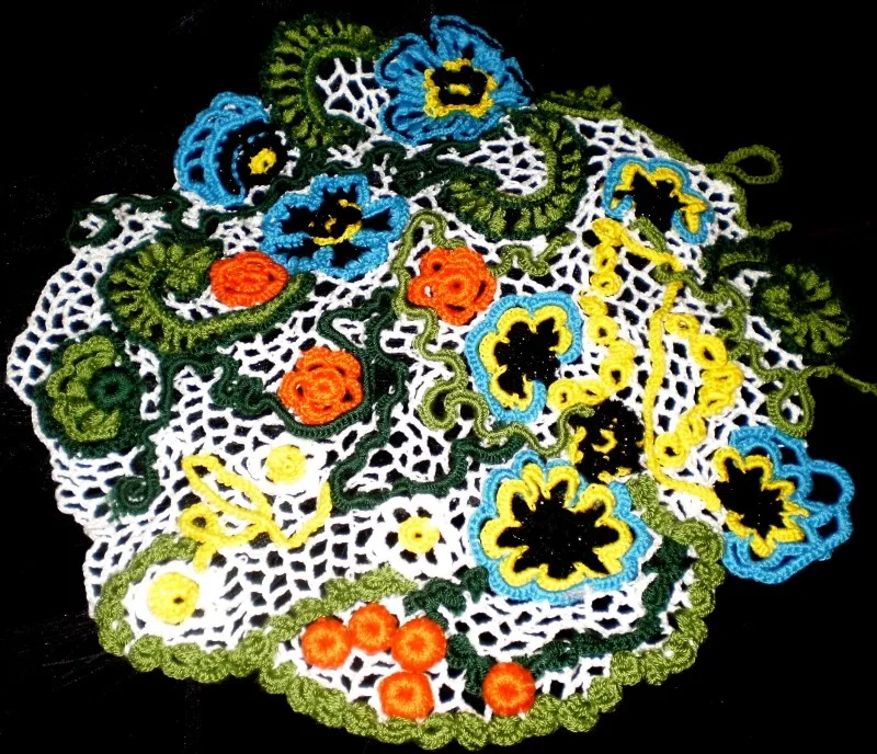 Хотела связать беретик для лета техникой ИК. пока навязывала элементы и пыталась собрать их в кучу, лето кончилось. Работу отставила на потом, и благополучно о ней забыла. И обнаружила только сейчас.