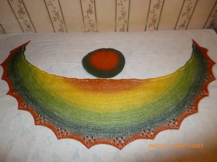 Девочки, вот такой комплект из вязаного(а потом подваляного) берета и небольшого бактуса вязала из Кауни 8/2 Осень