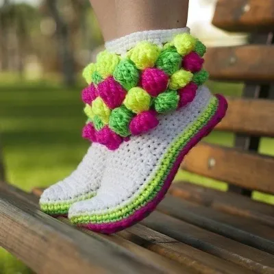 Такие тапочки-носки можно связать как для женщины, так и для мужчины, а декорировать изделие вы можете как угодно, по своему выбору!