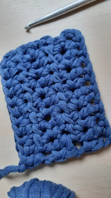 Вяжем крючком из трикотажной пряжи простой и универсальный узор для сумки, салфетки, ковра.