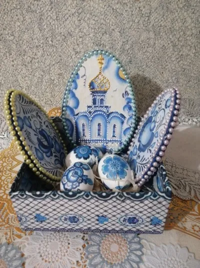 Екатерина, какие шикарные подарки! Красота и очарование. Вы не поделитесь секретами изготовления? Если это возможно, могли бы пару слов сказать, из чего и как делаете яйца на веточки и корзиночки? Так всё необычно! Хоть и Пасха прошла, но можно было бы взять на заметку Вашу работу, чтобы к следующему празднику сотворить что-то подобное. Успехов Вам!